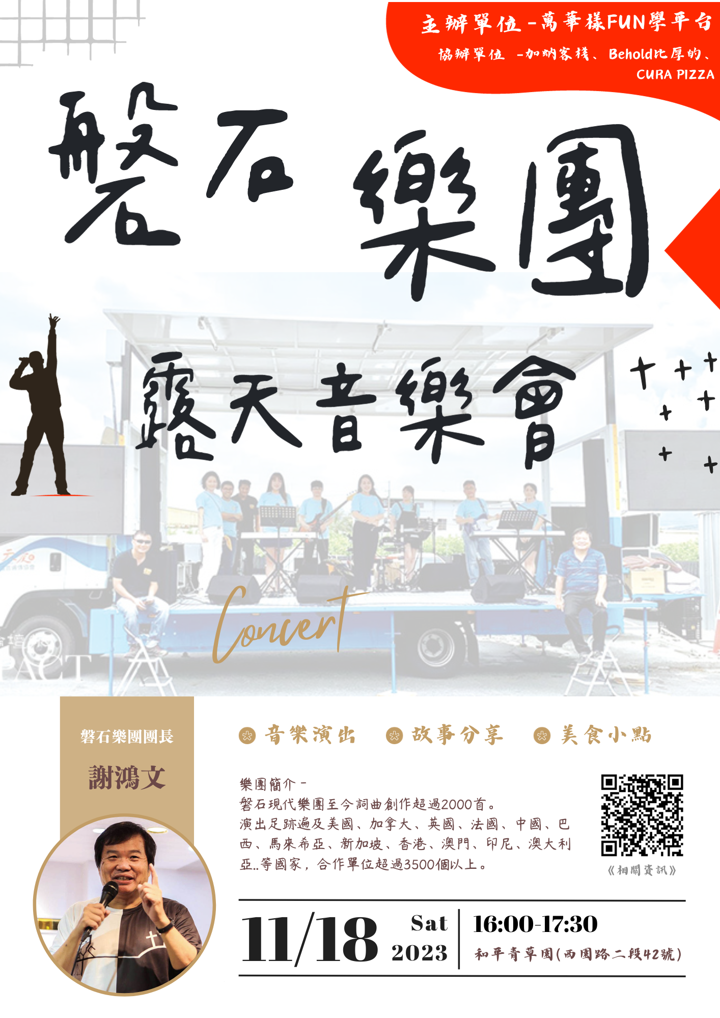 《多元學習》最新消息 《多元學習》露天音樂會-磐石現代樂團 by Jmathchiu 2023 年 11 月 18 日 written by Jmathchiu 2023 年 11 月 18 日 磐石樂團露天音樂會 萬華街頭也能有溫暖的瞬間,WOW! 路權申請到了,要辦嗎? 好啊,辦! 短短三周串聯超過20多間單位 規劃路線、設計流程、安排人力 我們辦到了!超過200多人的現場live band 老、中、青、幼四代一齊擺上自己能做的事情,就像天使團隊吧! 活動詳情 活動資訊活動內容:露天感恩音樂會活動時間:11/18(六) 16:00-17:30活動地點:和平青草園活動費用:免費 報名截止:11/17(五) 中午12:00前 任何問題請在line@詢問,將盡快回覆Line@:http://nav.cx/bSUlFwj若活動當天不能到,請於一周內通知我們喔! 0 comment 0 FacebookTwitterPinterestEmail Jmathchiu previous post 《18歲那年》ep.5 孫庠-蛻變 next post 《高中篇》YT高三學測 ep.7:條件機率 You may also like 《課程資訊》2026春... 2026 年 1 月 22 日 《聖誕派對》音樂劇:未... 2025 年 11 月 30 日 《多元學習》志工行動:... 2025 年 10 月 12 日 《多元學習》加蚋仔 呷... 2025 年 9 月 7 日 《課程資訊》2025秋... 2025 年 8 月 22 日 《課程資訊》2025暑... 2025 年 6 月 22 日 《多元學習》夏日運動會... 2025 年 6 月 21 日 《課程資訊》115會考... 2025 年 6 月 14 日 《課程資訊》2025小... 2025 年 6 月 7 日 《多元學習》玩具銀行一... 2025 年 5 月 24 日 Leave a Comment Cancel Reply Save my name, email, and website in this browser for the next time I comment.
