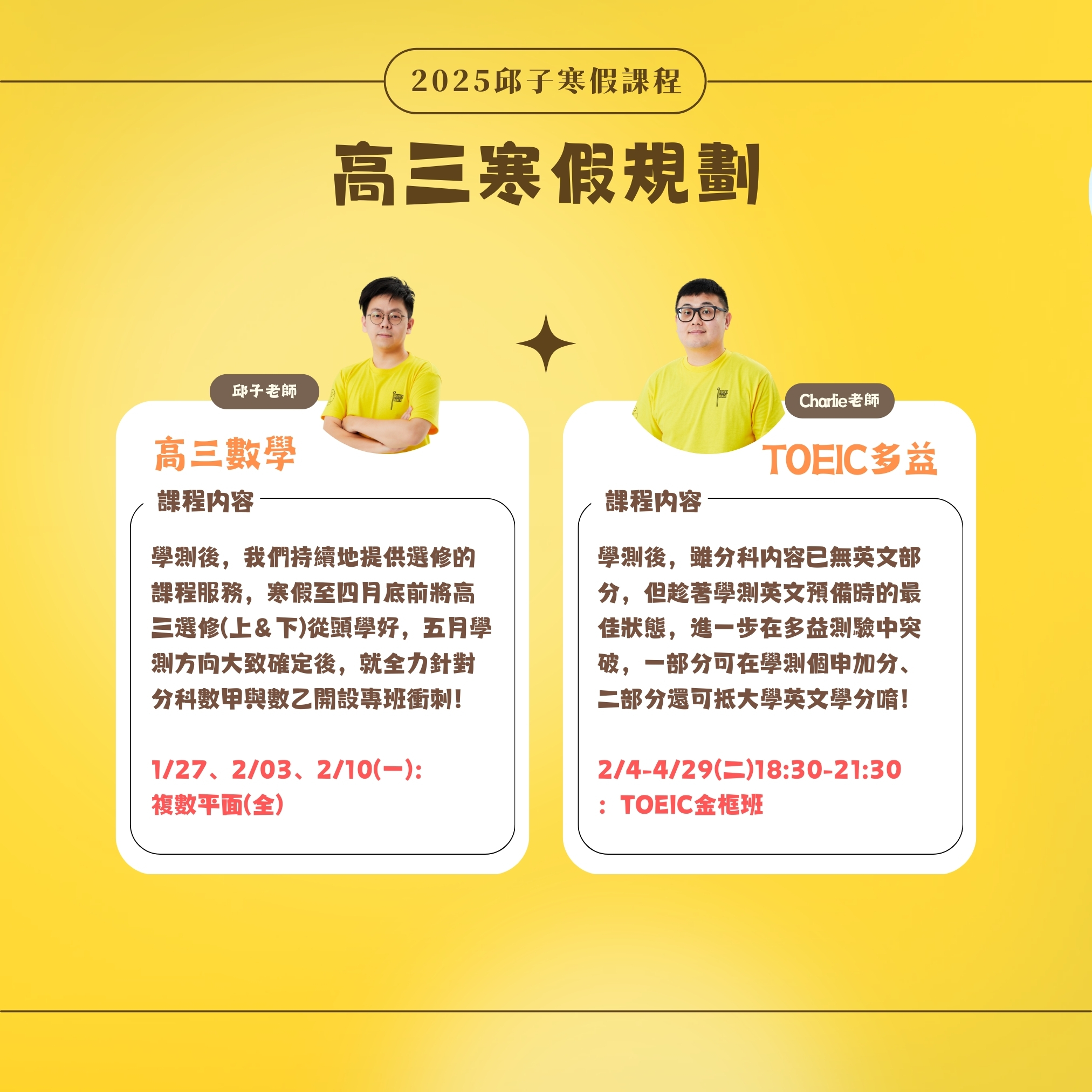 最新消息《課程資訊》 《課程資訊》2025春季班:寒假課程規劃 by Jmathchiu 2025 年 1 月 22 日 written by Jmathchiu 2025 年 1 月 22 日 2025春季班(2025.1-2025.6)招生中 歡迎來電預約諮詢/報名試聽。 0 comment 0 FacebookTwitterPinterestEmail Jmathchiu previous post 《課程資訊》2025春季班課程一覽表 next post 《高中篇》YT高三下數 ep.1:極式 Z-1 You may also like 《課程資訊》2026春... 2026 年 1 月 22 日 《聖誕派對》音樂劇:未... 2025 年 11 月 30 日 《多元學習》志工行動:... 2025 年 10 月 12 日 《多元學習》加蚋仔 呷... 2025 年 9 月 7 日 《課程資訊》2025秋... 2025 年 8 月 22 日 《課程資訊》2025暑... 2025 年 6 月 22 日 《多元學習》夏日運動會... 2025 年 6 月 21 日 《課程資訊》115會考... 2025 年 6 月 14 日 《課程資訊》2025小... 2025 年 6 月 7 日 《多元學習》玩具銀行一... 2025 年 5 月 24 日 Leave a Comment Cancel Reply Save my name, email, and website in this browser for the next time I comment.