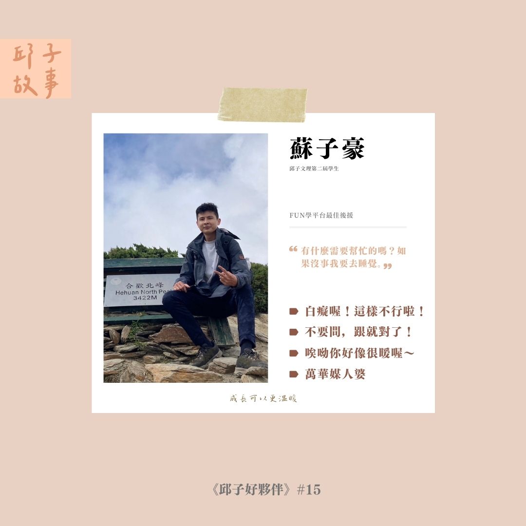 「奕筑,我跟你說件事。」透過他的觀察,讓團隊裡每個小小的事情都可以被照顧到。熱愛輔佐大家的他,有時看見他的行動時,真想說聲:「唉呦你好像很暖喔~」