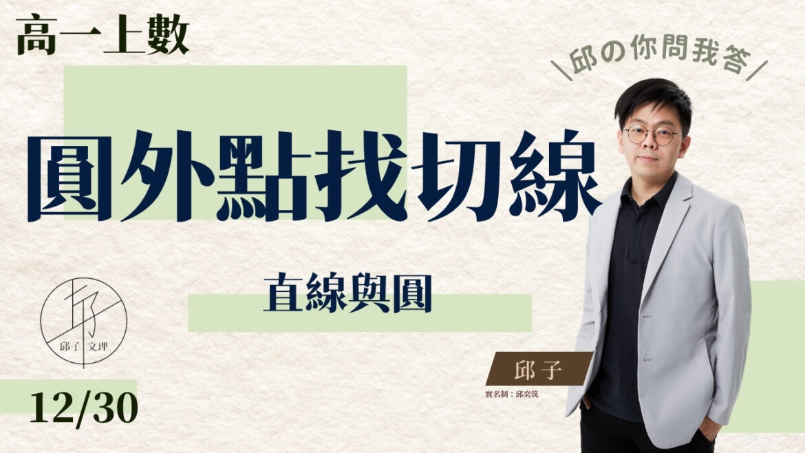 升學資訊《高一數學》 高一上數學EP.29《直線與圓:圓外點找切線》 by Jmathchiu 2025 年 12 月 30 日 written by Jmathchiu 播放影音 2025 年 12 月 30 日 0 comment 0 FacebookTwitterPinterestEmail