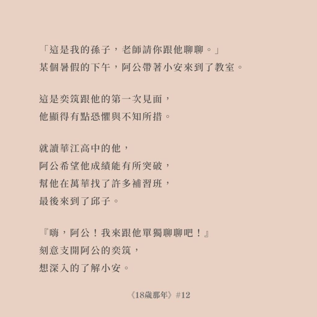 「老師,我最近有個想法…」、「老師,我決定了我要…」,諸如此類的話,你時常聽到她跟著奕筑分享,有時其實還滿敬佩奕筑可以充滿耐心的聽完並給予回應,因為在旁聽的我們,常常都覺得:「這麼ㄎㄧㄤ的想法,這人絕對瘋了!」