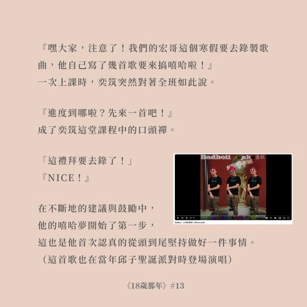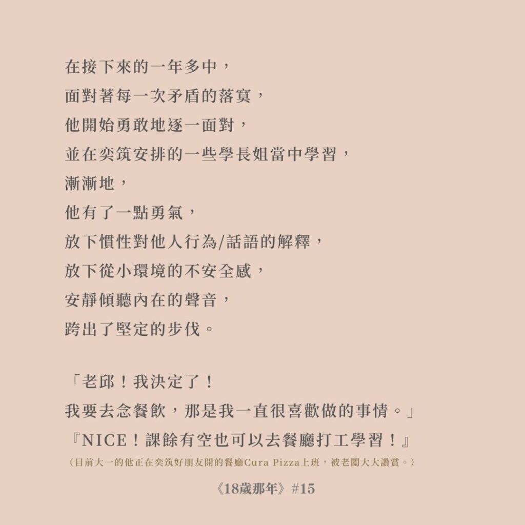 當年還是奕筑學生的她,在面對大考失利時,如此地說。
