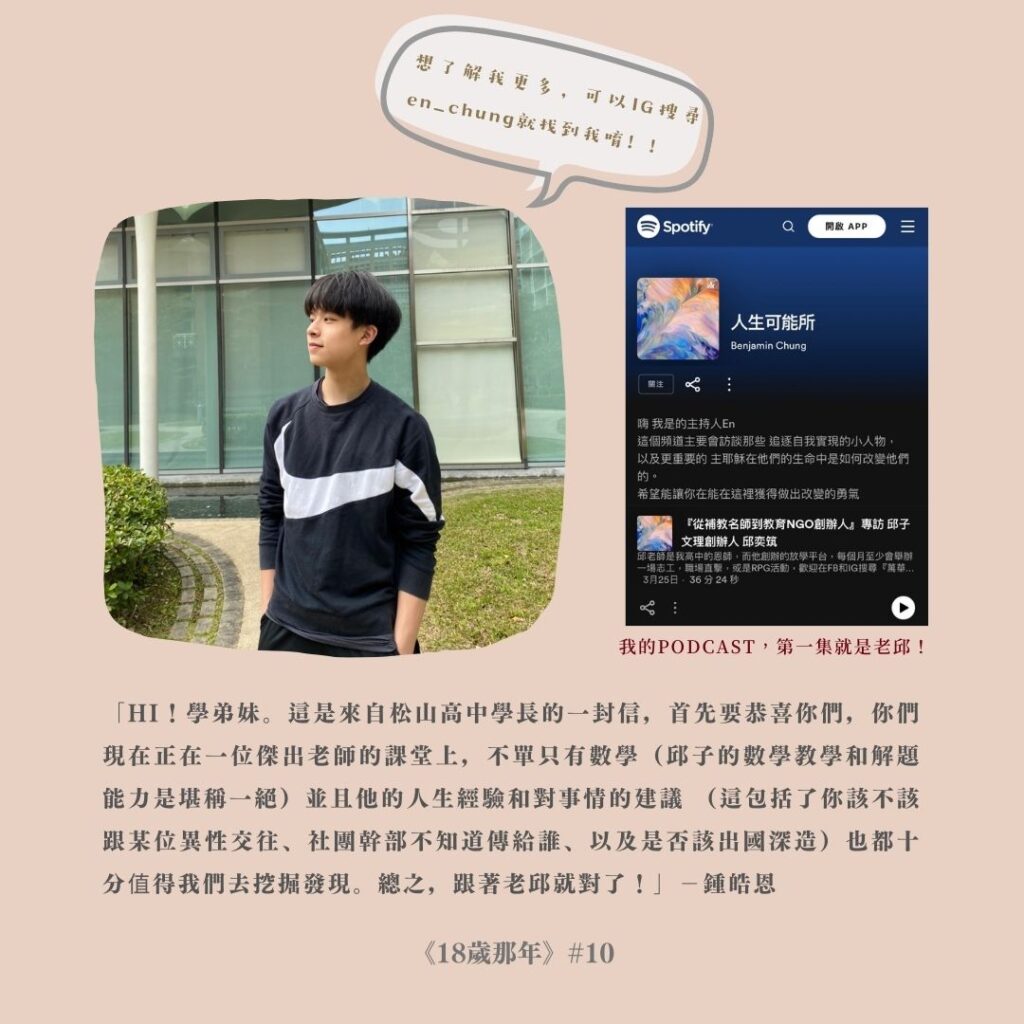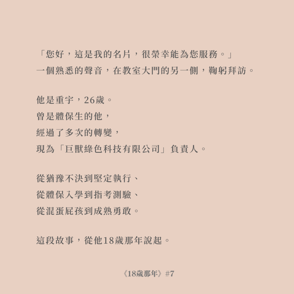 《18歲那年》個案故事 《18歲那年》ep.7 陳重宇-突破 by Jmathchiu 2023 年 12 月 10 日 written by Jmathchiu 2023 年 12 月 10 日 0 comment 0 FacebookTwitterPinterestEmail