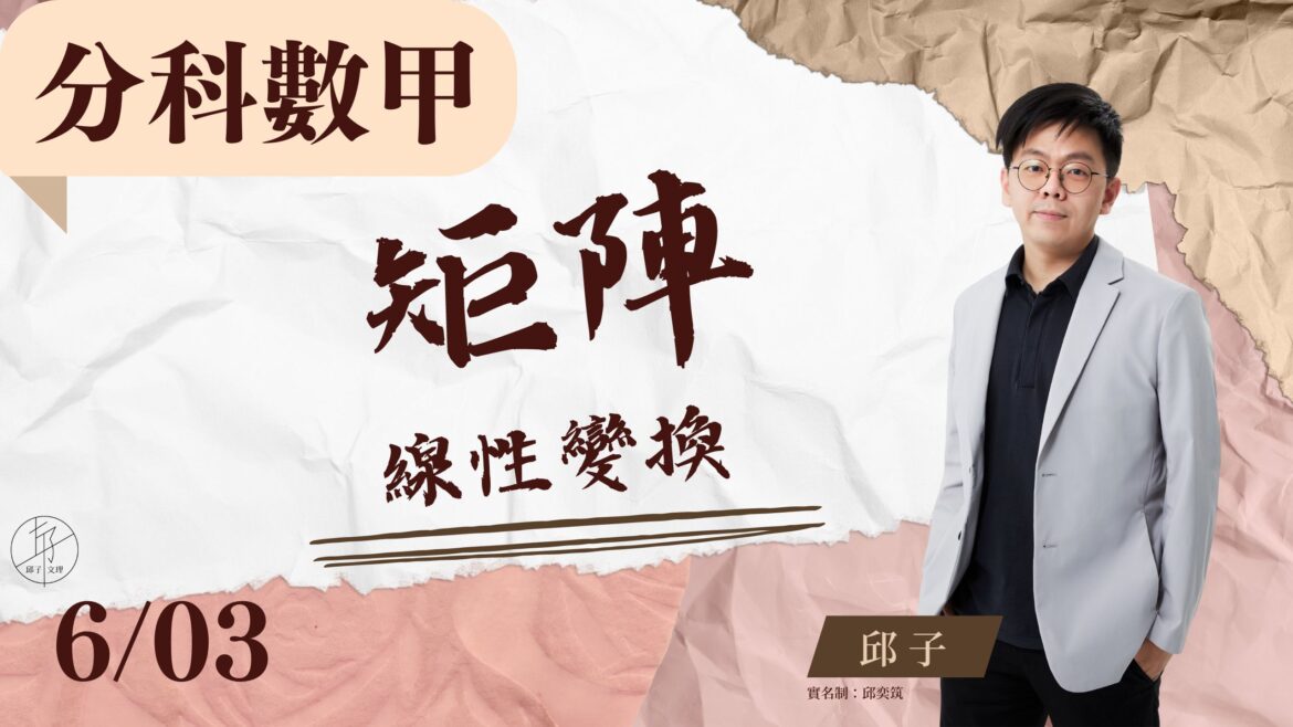 升學資訊《分科數學》 《高中篇》YT分科數甲 ep.14:矩陣(線性變換) by Jmathchiu 2024 年 6 月 3 日 written by Jmathchiu 播放影音 2024 年 6 月 3 日 0 comment 0 FacebookTwitterPinterestEmail