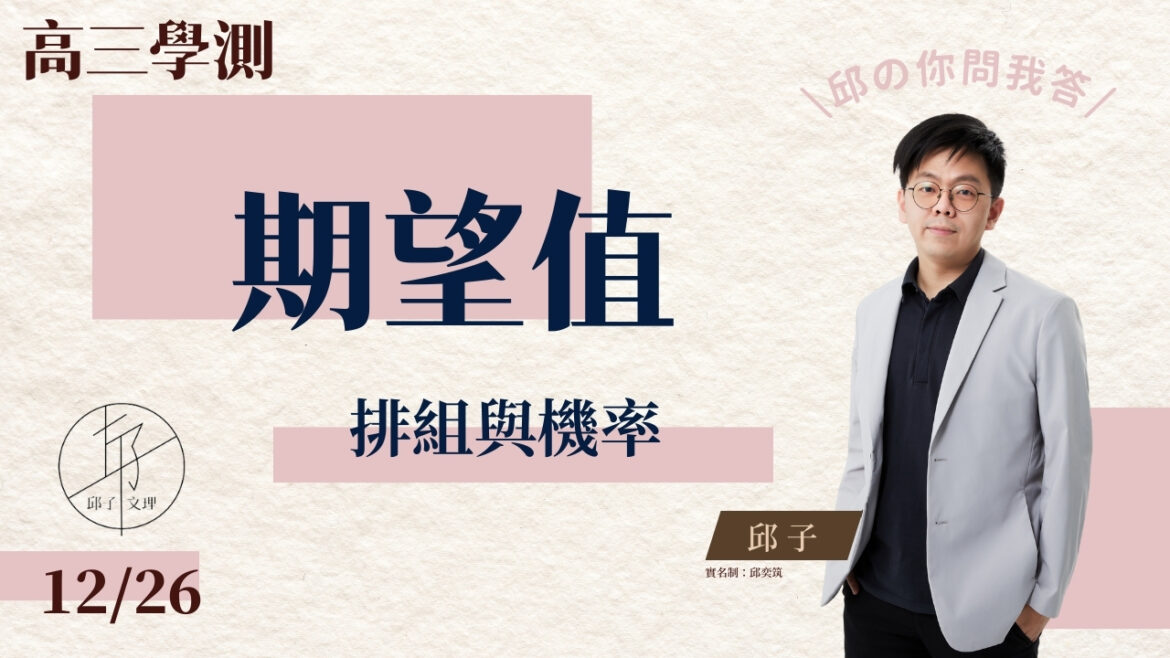 升學資訊《學測數學》 115學測數學EP.28《排組與機率:期望值》 by Jmathchiu 2025 年 12 月 26 日 written by Jmathchiu 播放影音 2025 年 12 月 26 日 0 comment 0 FacebookTwitterPinterestEmail